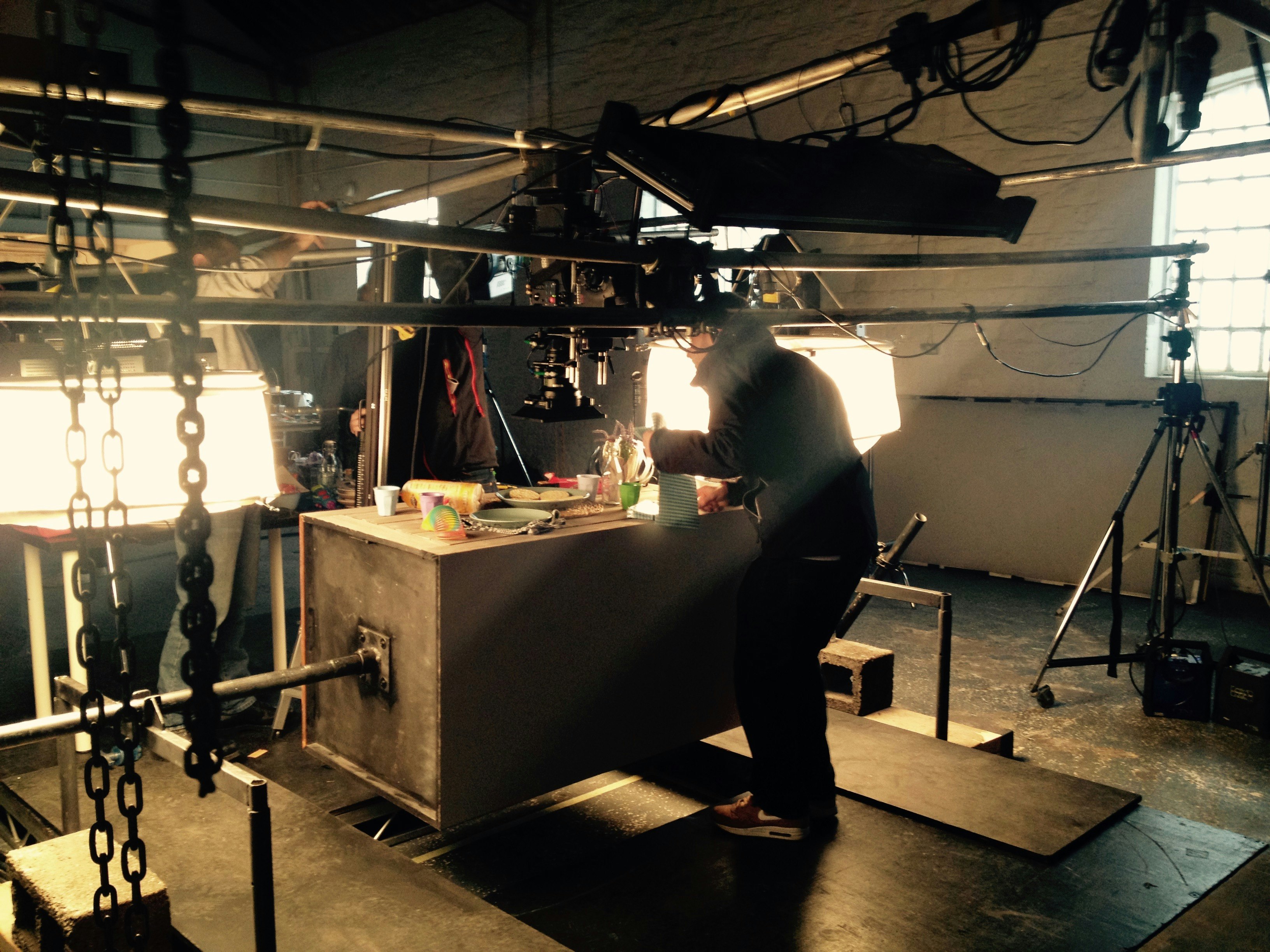 Simple concept, a one take wonder. Early in rehearsals it took 3 minutes to complete the action. By the end of the day the cast and crew had it down to 25 seconds flat every time.